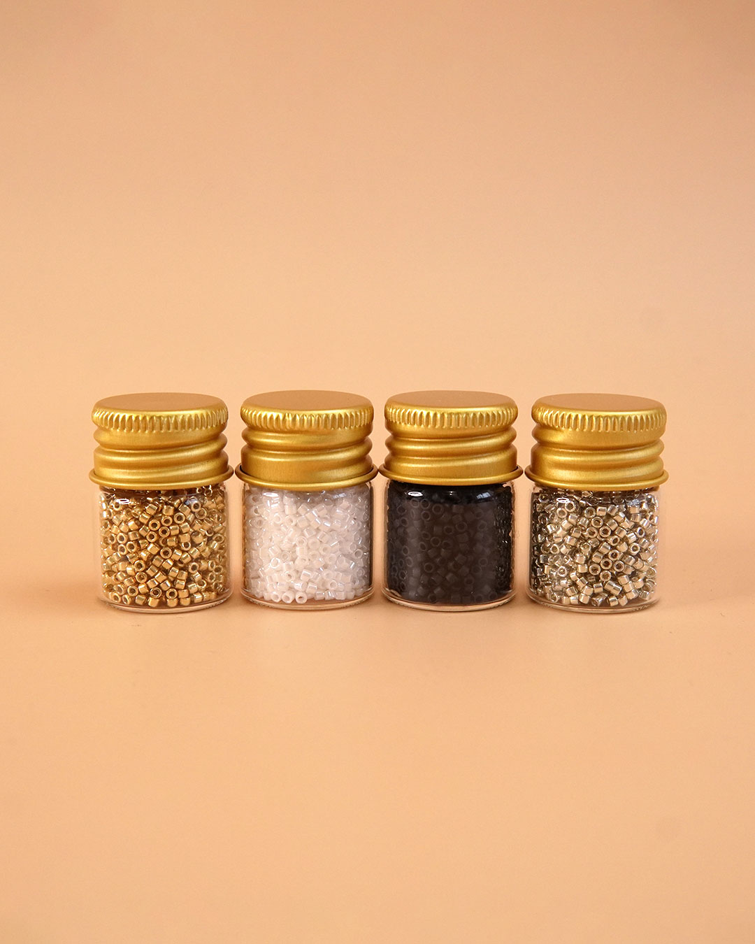 Cet assortiment perles Miyuki Delica 11/0 contient les couleurs de base pour le tissage de perles Miyuki : doré, argenté, noir mat et blanc perlé.