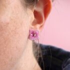 Une paire de clous d’oreilles en acier inox doré, sertis d’un cabochon en oxyde de zirconium de 3 mm.