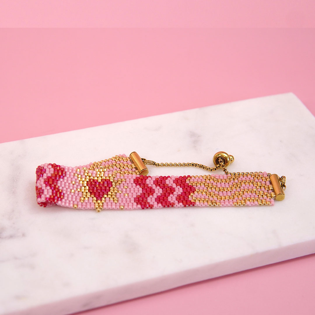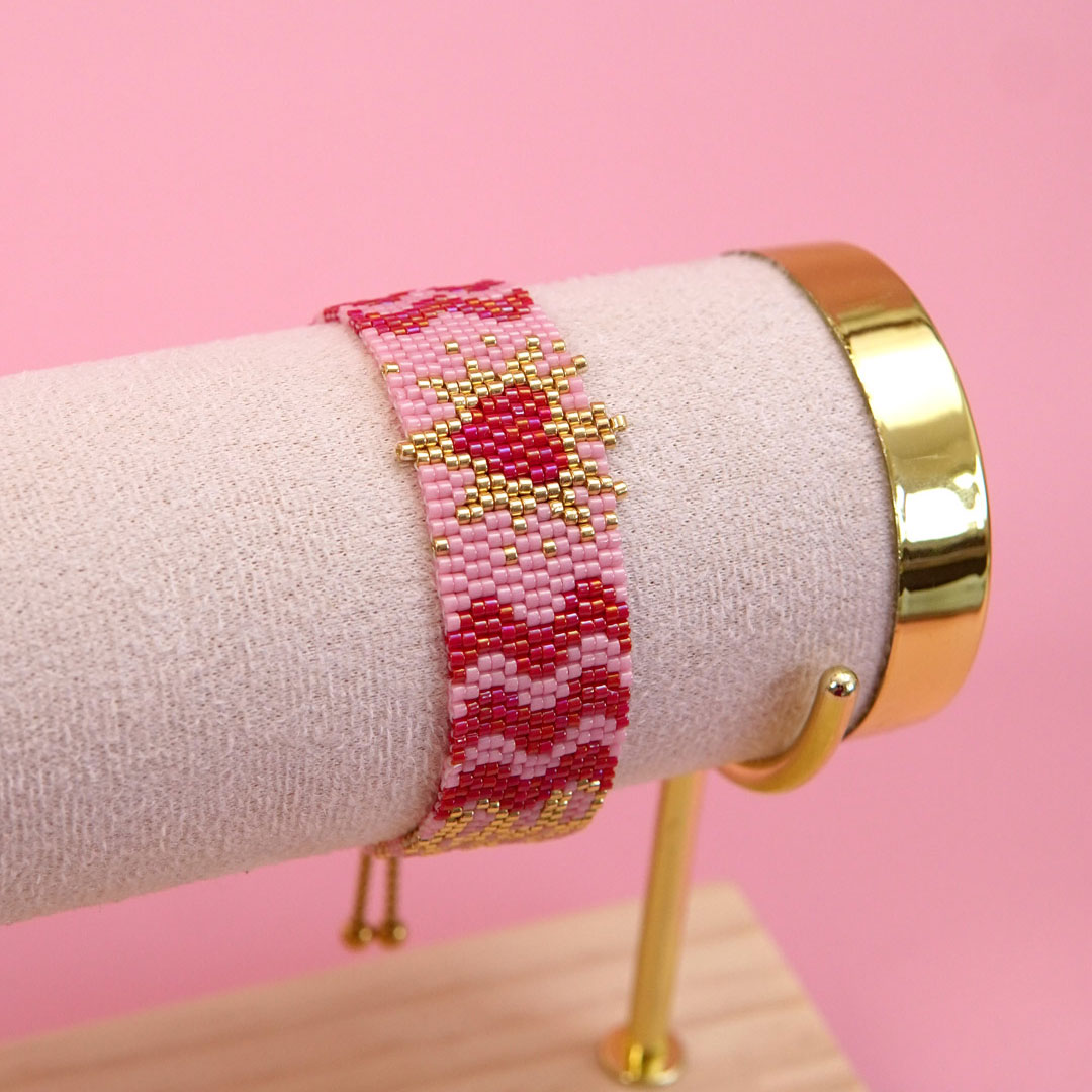 Bracelet Miyuki Coeur Ex-voto tissé à la main en Occitanie (France). Ce bracelet est réalisé grâce à une technique de tissage de perles à l’aiguille, donc sans métier à tisser. Il me faut un peu plus de 5h pour réaliser ce modèle. Les bracelets Miyuki sont des créations originales qui demandent de la patience et de la concentration.