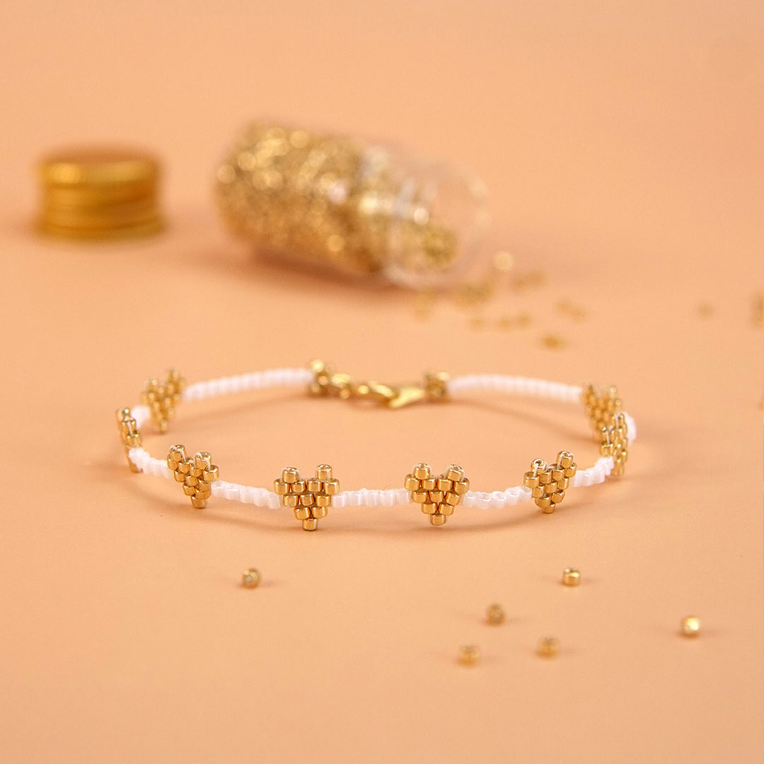Ce ne sont pas juste 14 modèles de bracelets Miyuki : c’est un vrai guide pour apprendre le tissage de perles Peyote et Brick Stitch, apprendre à adapter vos bracelets et apprendre à choisir vos couleurs de perles Miyuki. C’est un ebook au format PDF, accompagné de schémas pas à pas et de tutoriels vidéos sur YouTube pour avancer à votre rythme, chez vous.