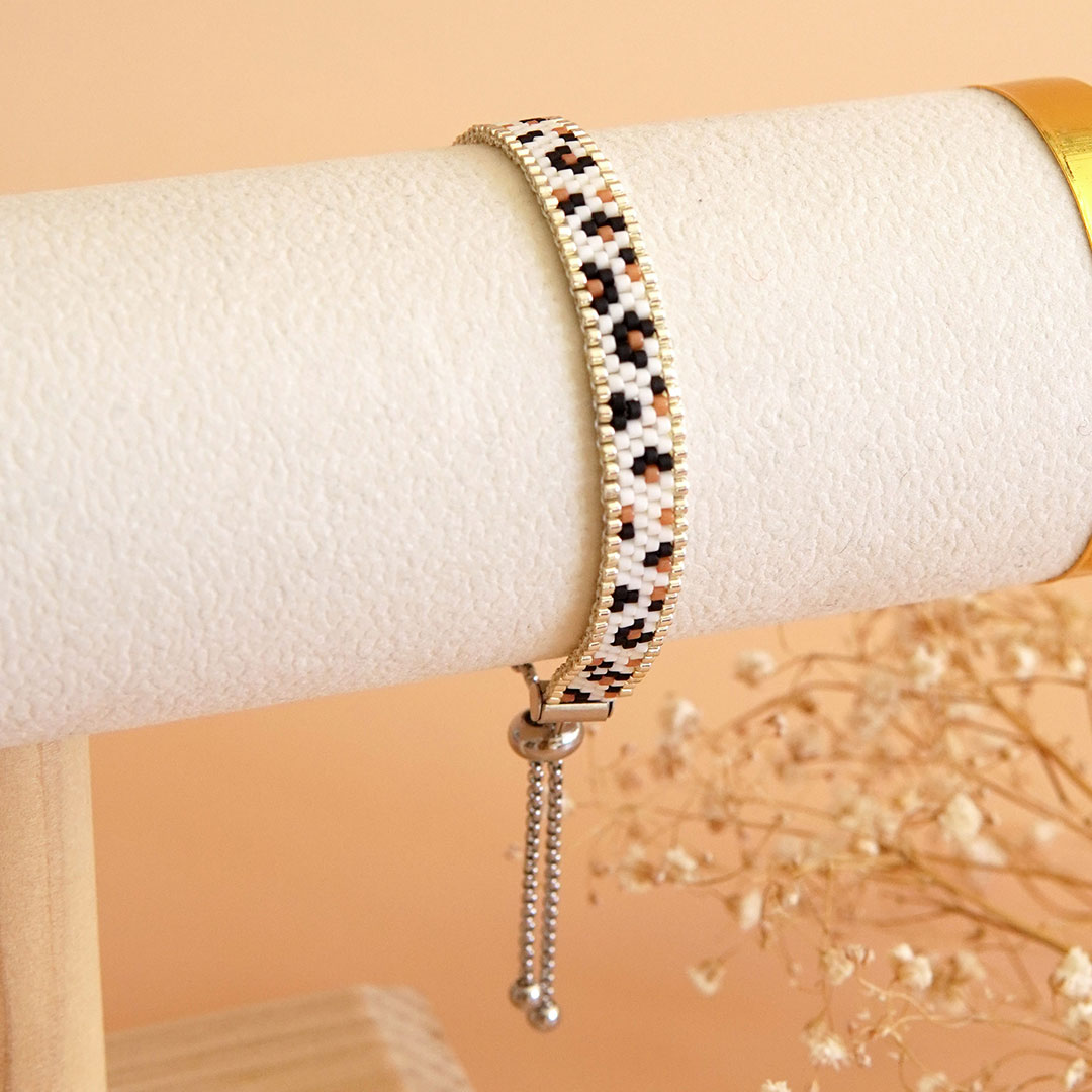 Ce kit bracelet Miyuki léopard argenté est le projet idéal pour apprendre le tissage Peyote.