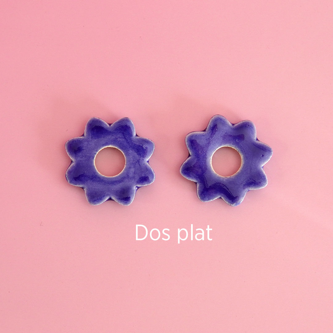 Ces pampilles fleurs en céramique sont des pièces uniques et artisanales fabriquées en France. Elles sont peintes à la main avec des émaux, elles ne sont donc pas parfaitement identiques. Ces breloques fleurs à enfiler sur des créoles sont plus originales que des breloques en plastique et produites industriellement.