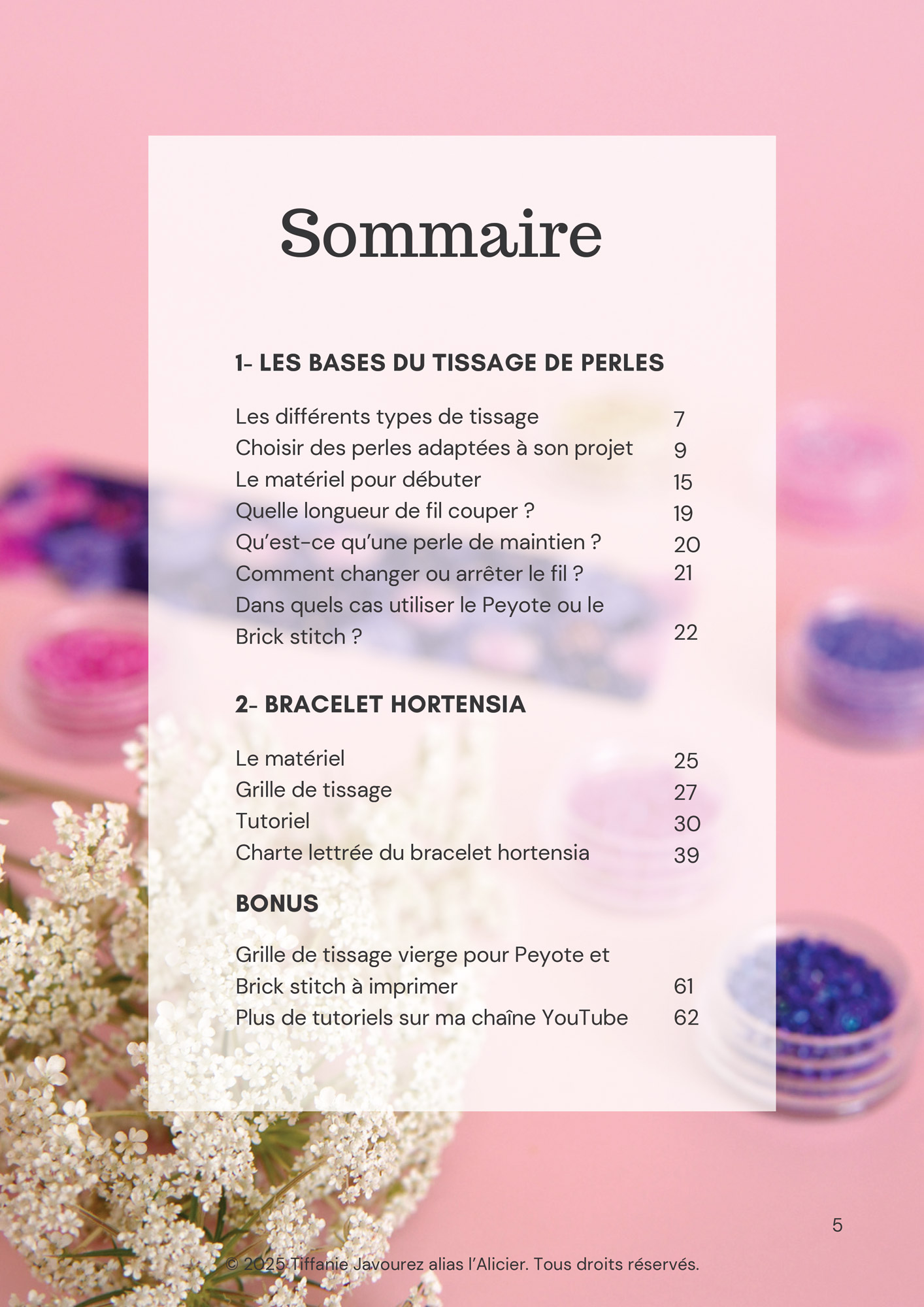 Schéma et tuto du Bracelet Hortensia et le chapitre 1 de l’Ebook Créations poétiques en perles Miyuki ! Dans cet ebook à télécharger au format PDF, vous retrouverez :